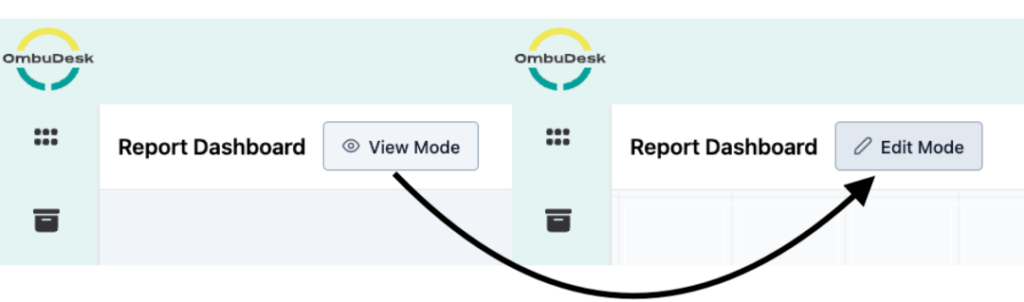 In the upper left corner of the application, next to "Report Dashboard," there is a button labeled "View Mode." Clicking this button switches you to Edit Mode, allowing you to customize the report dashboard to your liking.
